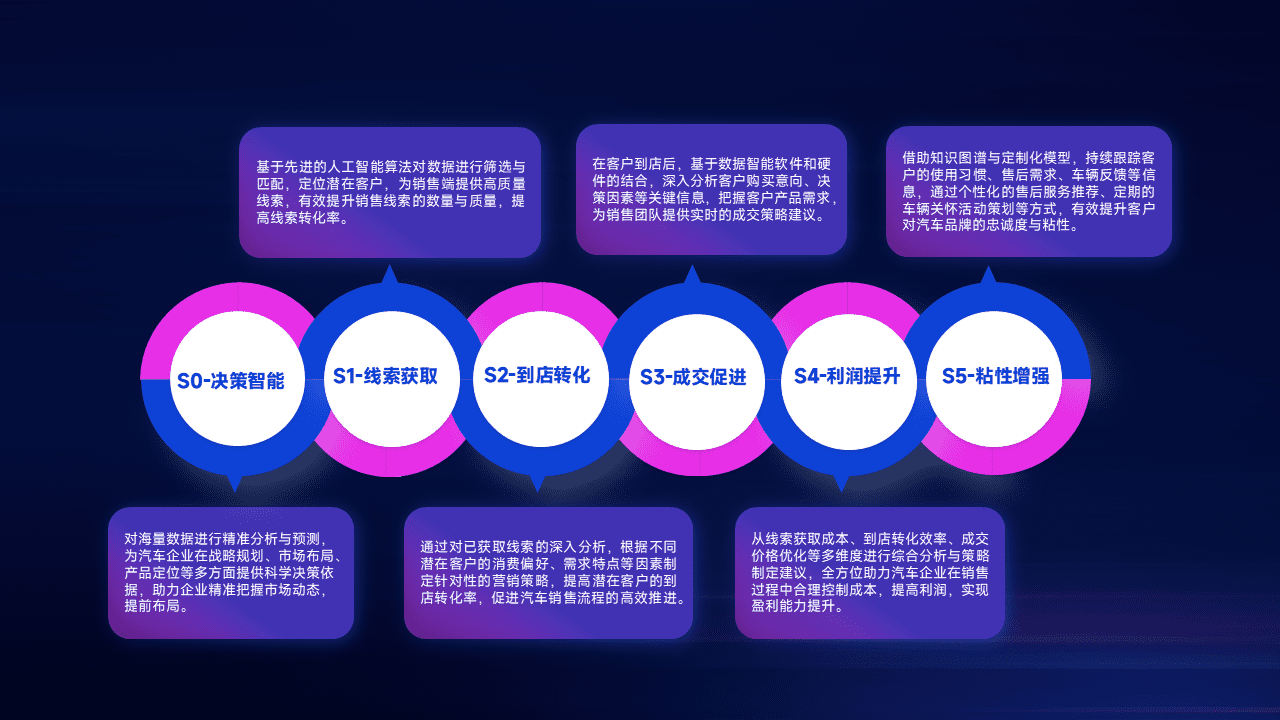 通过拓宽潜在客户来源、、优化线索分配并提高到店转化率,,,,以增强销售效率。。同时,,,,利用线索数据不断优化分析模型,,,有效提升转化率,,,,扩大营销影响力。。。